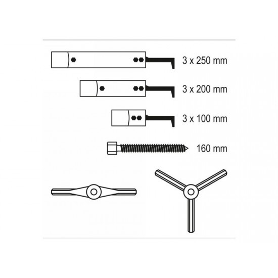 A készlet elemei a következő lehúzók összeszerelését teszik lehetővé: kétkaros 100/200 és 250 mm-es karhosszúsággal a belső és külső változatban, valamint a háromkarosak - 100/200 és 250 mm-es karhosszúsággal belső és külső változatok.