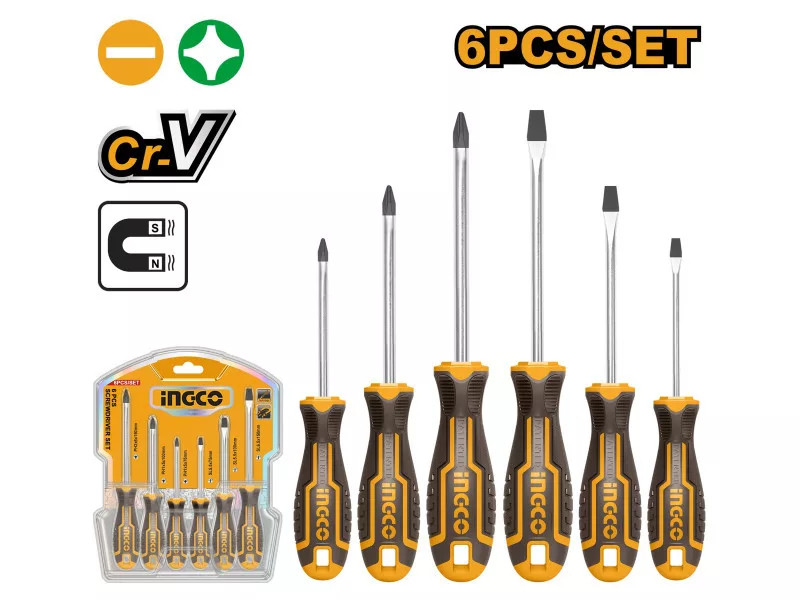 Csavarhúzó készlet 6 részes mágneses CrV Ingco