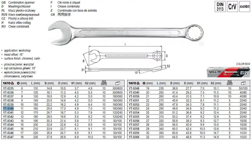 Csillag-villáskulcs 11mm /160mm CrV Yato