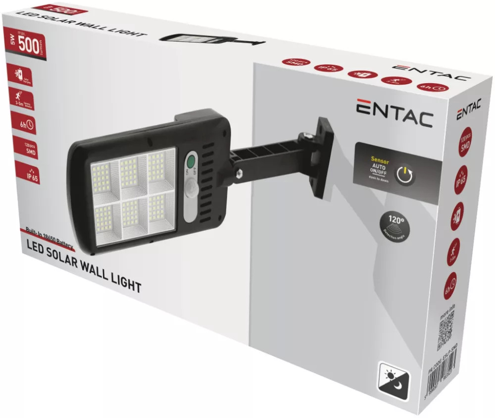 Entac Napelemes Műanyag Fali lámpa 5W SMD mozgásérzékelővel