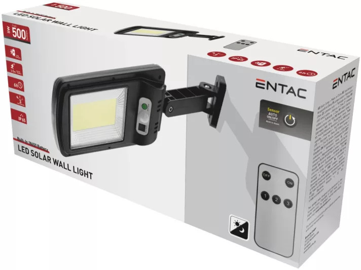 • Entac Napelemes Műanyag Fali lámpa 5W mozgásérzékelővel és IR távirányítóval