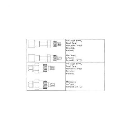A készletben található imbusz, torx és XZN (spline) bitfej generátor szereléséhez 1/2″ befogással