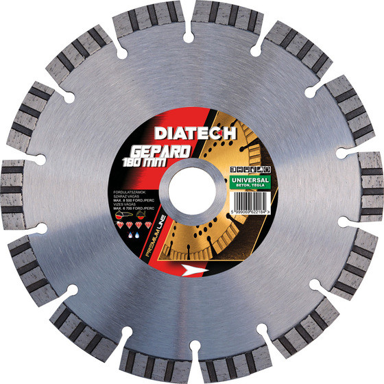 A Gepard kiváló minőségű és biztonságú vágótárcsa. A gyémántszegmensek speciális formája, azaz a turbókialakítás valamint az alaplemezen kialakitott lyukak csökkentik a hőfejlődést és érezhetően növelik a vágási sebességet, és ritkább hűtési szüneteket tesznek lehetővé. Főleg beton, vasbeton vágásához javasoljuk, de általános használatra is alkalmas.