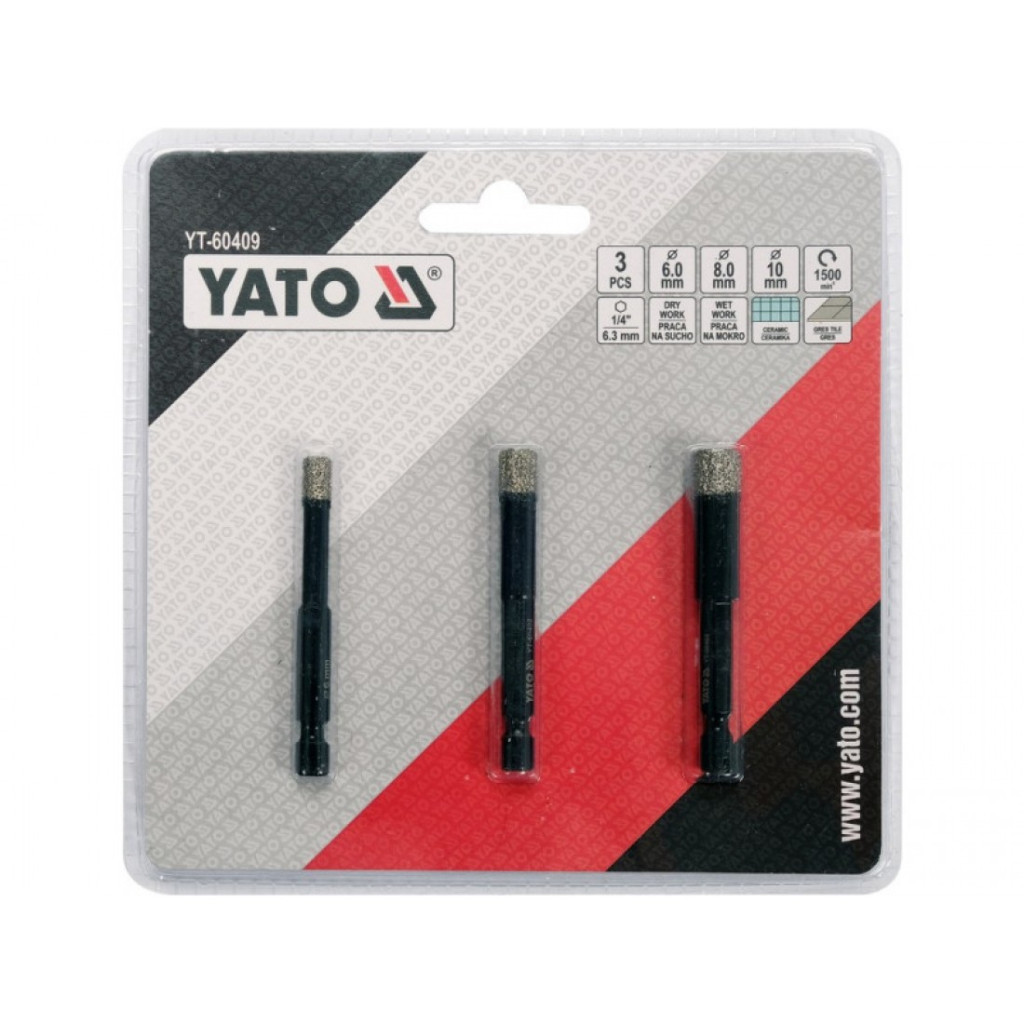 Gyémánt körkivágó készlet 3 részes 6,8,10mm vizes/száraz bitbefogású Yato