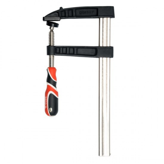 Profi asztalos szorító állítható sínen, menetes szorítással ragasztási munkákhoz, összeszereléshez. A hatékony szorító és csúszó mechanizmus garantálja a kapcsok párhuzamos működését. A rögzített anyag kicserélése csak néhány másodpercet vesz igénybe. A puha befogó rész védi a mechanikai sérülésektől a befogott anyagot.