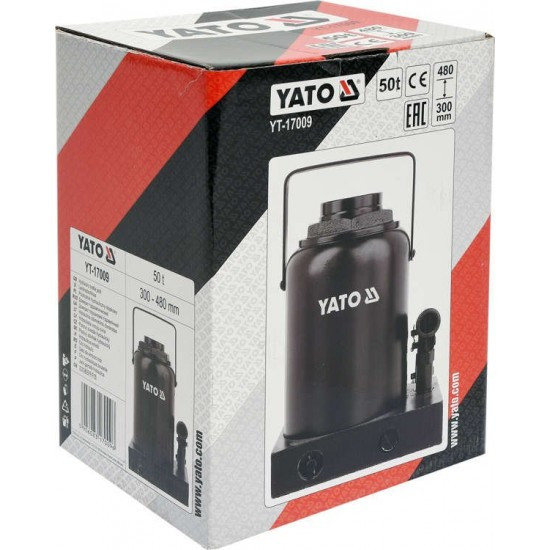 Professzionális YATO hidraulikus emelő szeleprendszerrel, amely pontosan adagolja az olajáramot. Az emelő emelési kapacitása 50 tonna, az emelési tartomány pedig 300 - 480 mm. Kis méret és súly jellemzi, ami fontos a szállítás és a tárolás szempontjából. Autóműhelyekben és járműszervizekben nélkülözhetetlen.