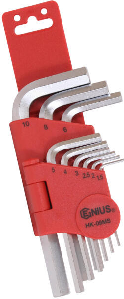 • 9 db L-alakú imbuszkulcs; méret: 1.5, 2, 2.5, 3, 4, 5, 6, 8, 10mm
