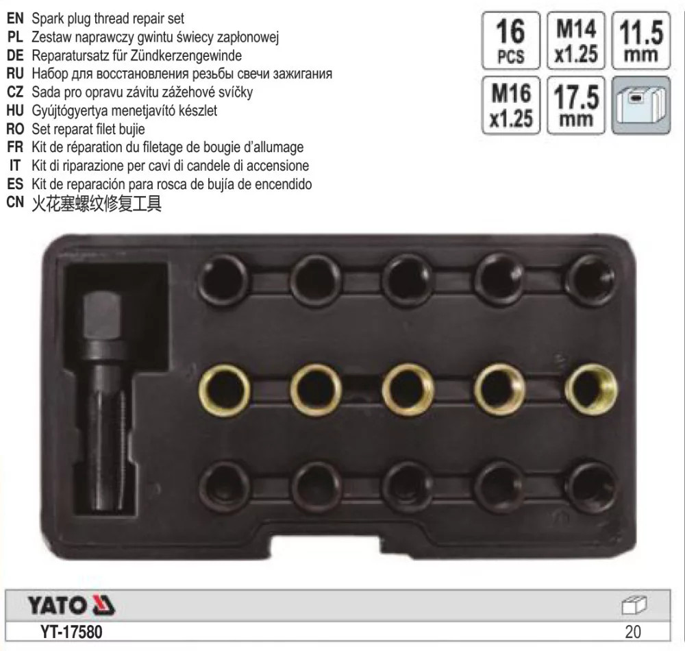 Izzítógyertya menetjavító és tisztító készlet 16 részes M14,M16 Yato