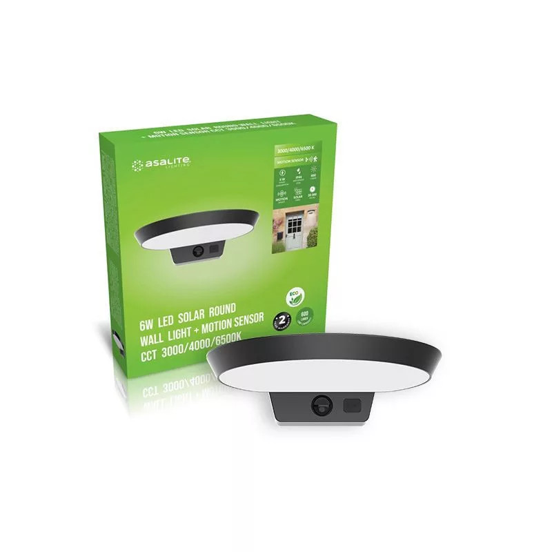 LED Napelemes ültéri ámpa IP54 6W CCT (600 lumen) kerek + szenzor Asalite