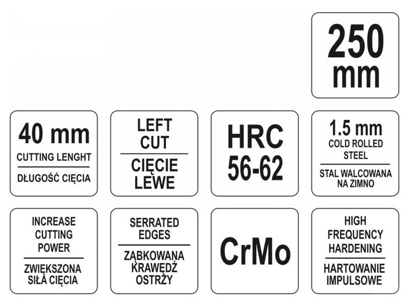 • Lemezvágó olló 250mm balos CrMo Yato