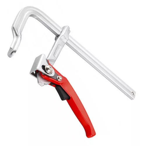 Kovácsolt szorítókar gyorskioldó mechanizmussal, mozgatható pofával a befogott anyag alakjához való pontos igazodáshoz professzionális asztalos, hegesztő munkákhoz.