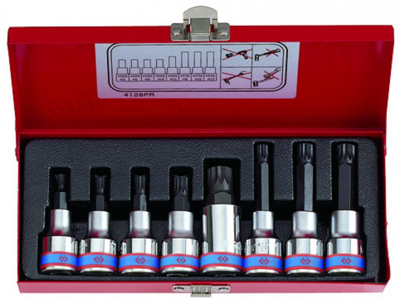 Rátűzőkulcs készlet, 1/2", XZN, fém kazetta, hossz 60/80 mm, M5?M16, 8 részes King Tony