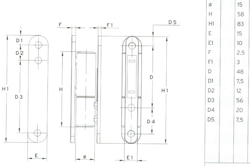 Statikus ajtópánt 15mm, sima fehér horgany.LF 15 dupla talp