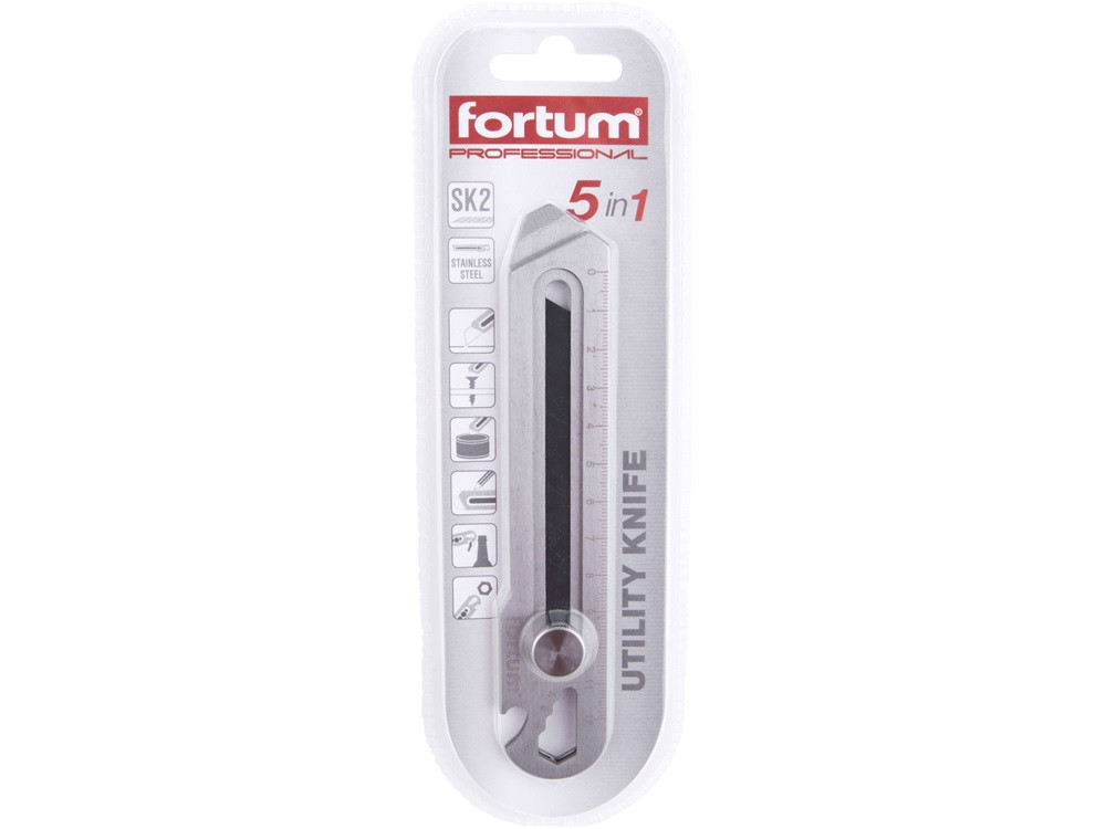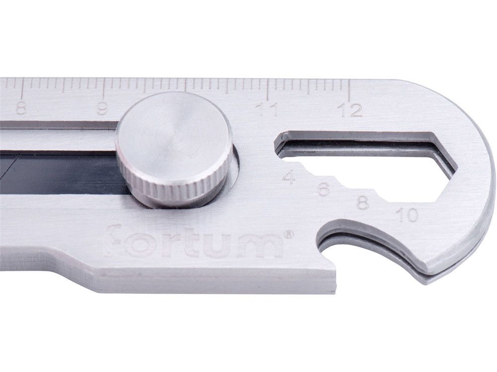 Tapétavágó kés, rozsdamentes acél fémház, 5 funkciós, tripla vágóéllel; 18mm, csavaros rögzítés, Fortum