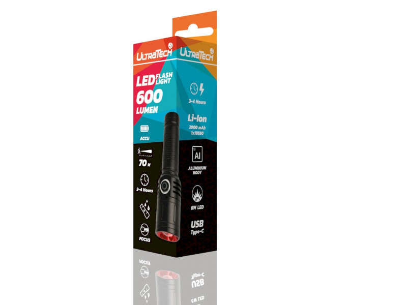 UltraTech elemlámpa tölthető, 600lm, 3fokozat