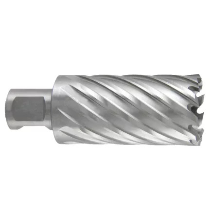 Weldon (3/4) szárbefogással rendelkező oszlopos és mágnestalpas fúrógépekhez. Nagy teljesítményű HSS gyorsacélból. Az optimalizált vágóél-geometria nagyobb fúrási teljesítményt és gyorsabb forgácselvezetést tesz lehetővé. Gyors, pontos fúrás pontozás és előfúrás nem szükséges. (Mivel a maglyukfúró csak fogszélességben forgácsol, jelentősen gyorsabb a fúrás, kisebb a szerszámkopás.)