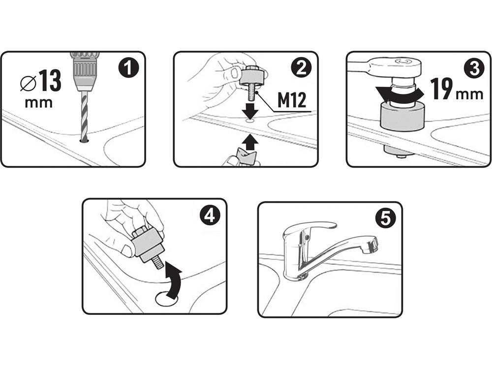 Fémlemezek lyukasztásához, konyhai-, mosogató csaptelepek felszereléséhez ajánlott.